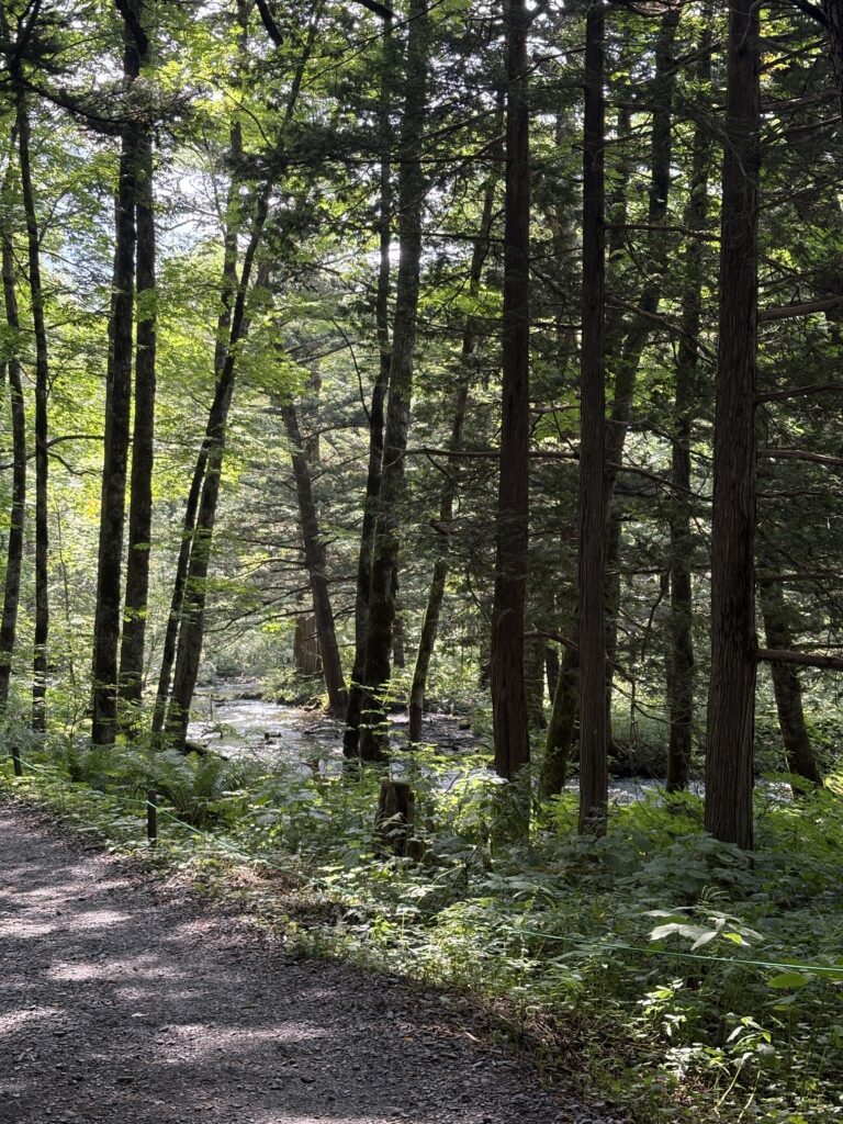 上高地から徳澤園までの道は標高約1,500メートルなのに登山道が整備されているためスニーカーはもちろん、サンダル、低めのヒール、スーツケースでも歩ける