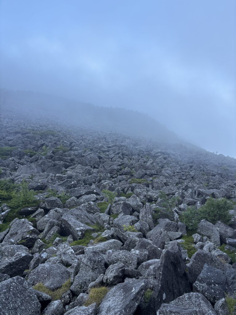 権現岳に登るのが14時に、、、途中まで登るも力が入らず雨が降ってきたため15時やむなく下山し青年小屋でテント泊