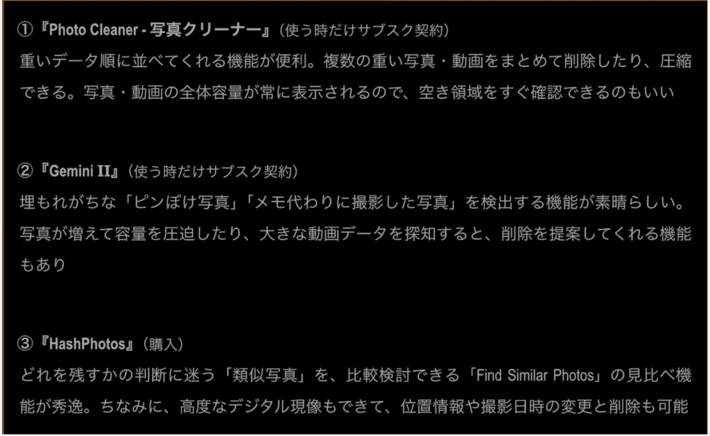 筆者は、仕事がら写真や動画のデータが多い。投資だと考え、得意技が違う3つのiPhone・iPad用の有料アプリを併用している。